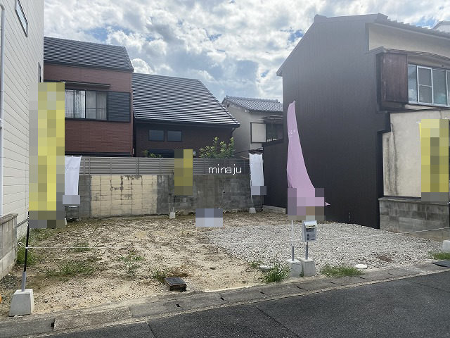 宇治川南側の向島エリアです。メインの道路である国道24号線より西側の住宅地内の立地です。住宅が密集して建っているエリアのためお隣との距離が近いですが、本物件は前面道路5mと広々なので圧迫感はそれほど感じないかと。ただし、この辺りは細い道路や入り組んでいるところもあるので、大きな車をお持ちの方は周辺道路は確認要です。電車は近鉄京都線・京阪宇治線の2WAY利用できます。また、徒歩圏内にコンビニ、スーパー、病院、郵便局等何かと揃っているので便利に生活していただけます!有効宅地91u、間口は8.9mあるので駐車スペースもしっかり確保できますね^^ 建築条件は無いのでお好きなハウスメーカーや工務店等で建築していただけます。※土地面積に私道負担面積22.24u含む。西側隣家の外壁・屋根の一部が越境しております。