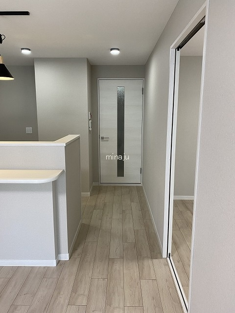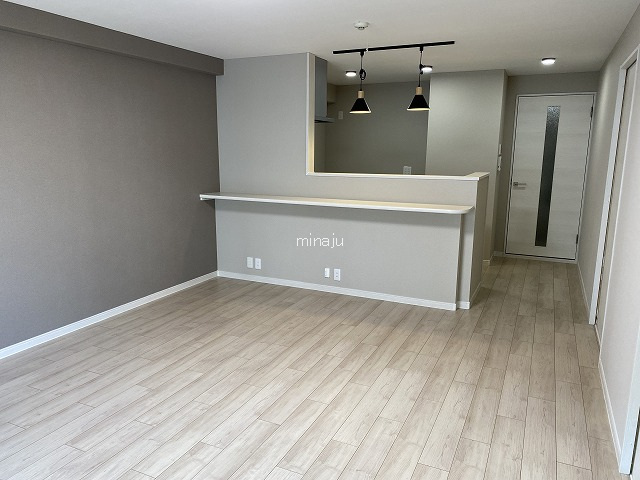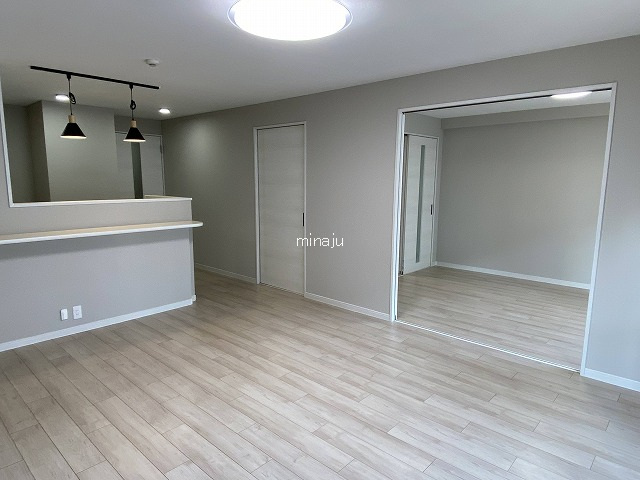 一部間取り変更(LDKと洗面室、和室2室→洋室2室)、システムキッチン入替え、システムバス入替え(浴室暖房乾燥機有り)、トイレ入替え(シャワートイレ)、給湯器入替え、洗面化粧台入替え、全建具入替え、下駄箱新設、洗濯パン・カラン新調、振れーカー入替え、床フローリング張替え(洗面室とトイレはCF張替え)、ダウンライト新設8箇所、全室照明器具取付け、サッシ枠上張り、コンセント・スイッチ類新調、TVモニター付きインターホン入替え等