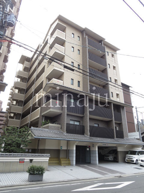 伏見区役所目の前、場所・学区ともに人気のマンションです!同じ敷地内に壱番館と弐番館が並んで建っています。瓦や格子を使った和風なエントランスが雰囲気良いですね^^ このお部屋は壱番館(西側の棟)の2階部分、通りに面した三方角住戸です。3面バルコニーで開口部分が多く通風良好です。マンション近隣には商店街、小・中学校、公園、図書館、スーパー、コンビニなど生活環境揃っていて生活しやすく便利な立地です。一方で常に車通り・人通りが多く静かな環境とはいきませんので気になる方は現地確認要です。ですが、駅は徒歩10分圏内に3駅があり、京都市バスの停留所も近く交通環境も良好です!
