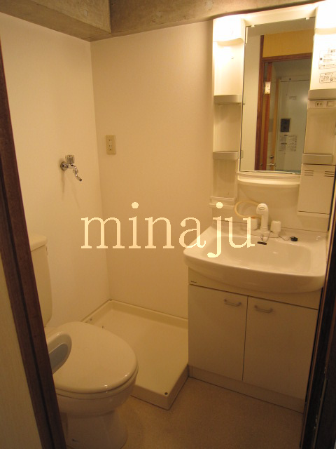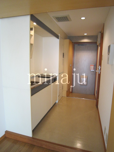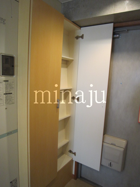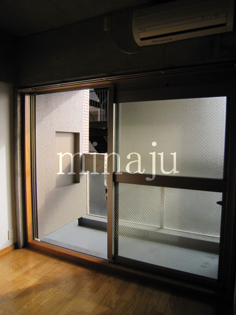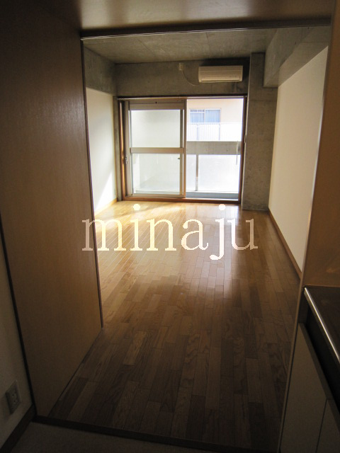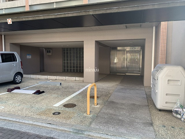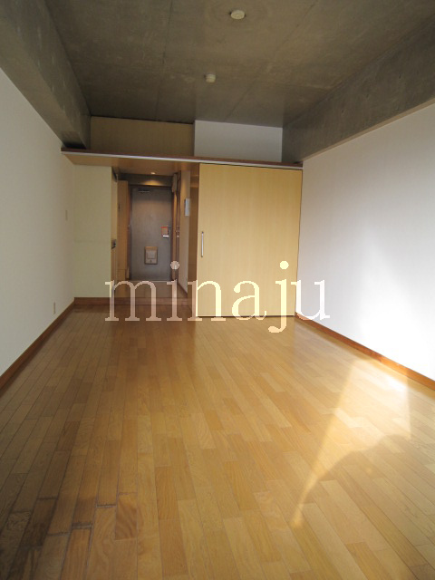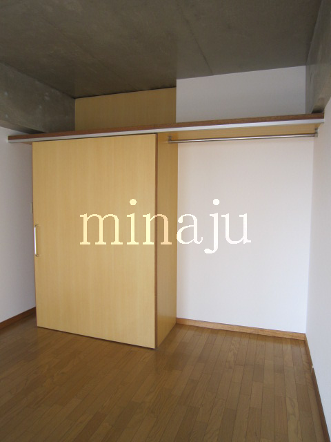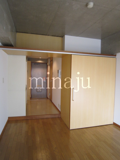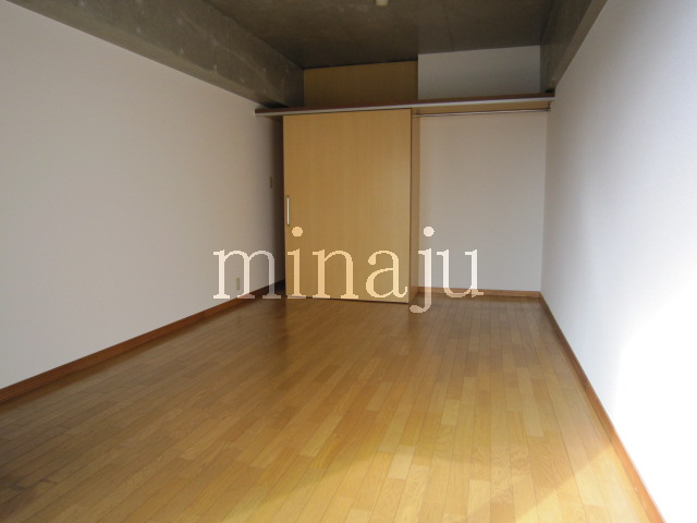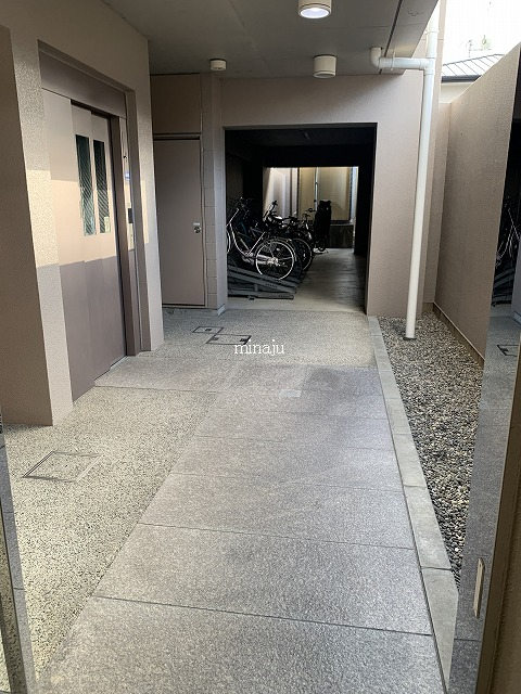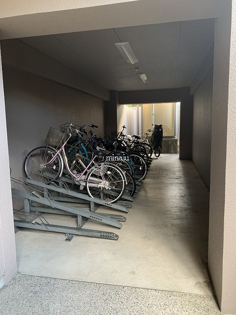 室内は昔流行った一部コンクリート打ちっぱなし!デザイン性を活かした室内を楽しみたい方向けといった感じですね。トイレが脱衣所部分にあるヨーロピアンタイプになっていますので、好き嫌い分かれるかも。居室とキッチン部分との間にはしっかりとした仕切りが無く、クローゼットの1枚扉をスライドさせるとトリッキーに仕切ることができます。ベランダ前には建物がありますが接近はしていません。ただしスカッと抜けている感じではないので、日当たり具合が気になる方は現地要確認です。自転車置場はオートロックの中にあり、屋根付きなので安心です。※写真は以前に空いていた時のものです。