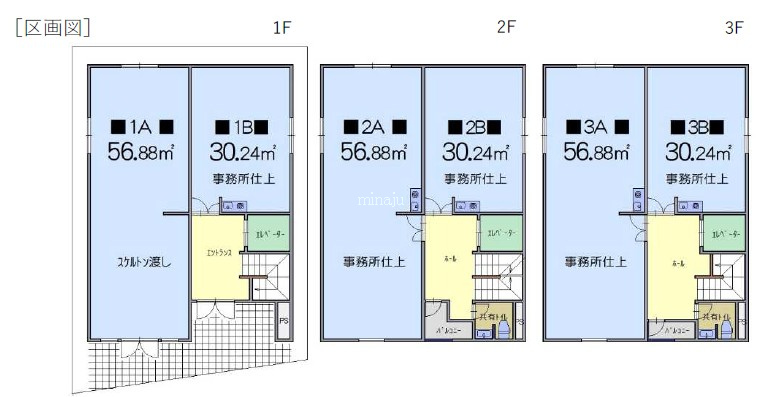 | 特色 | 新築、大通り面、飲食・物販不可、エレベータ、トイレ共用(2F/3F)、事務所仕上げ渡し、ガス引込可能 ※間取りにあるキッチンは付いていない可能性あります。 | ||
