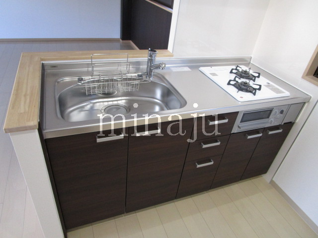 バストイレセパレート、別洗面3点セパレート、独立洗面台、シャンプードレッサー、室内洗濯機置場、オートロック、エアコン(2基、残置物)、TVモニターホン、ガスキッチン(2口コンロ、グリル付)、システムキッチン、ウォシュレット、2階以上、角部屋、宅配BOX、駐輪不可 |